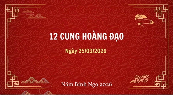 Khám phá Tử vi ngày 25/03/2026 cho 12 con giáp để biết dự báo về tình cảm, sự nghiệp, tài chính và sức khỏe. Nhận những lời khuyên hữu ích giúp bạn tận dụng cơ hội và vượt qua thử thách, có một ngày đầy may mắn và thành công.