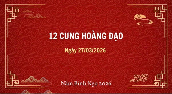 Khám phá Tử vi ngày 27/03/2026 cho 12 con giáp để biết dự báo về tình cảm, sự nghiệp, tài chính và sức khỏe. Nhận những lời khuyên hữu ích giúp bạn tận dụng cơ hội và vượt qua thử thách, có một ngày đầy may mắn và thành công.